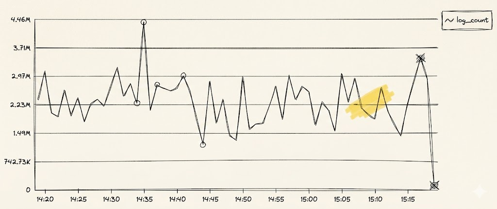 우리 서비스는 HR 서비스이기 때문에 대부분의 트래픽은 9시부터 18시 사이에 발생한다. 시간당 대략 34GB(2.7억건)의 로그가 발생하며 그 중에 44% 정도가 jdbc.resultset=INFO 에서 발생함을 확인했다. 여기서 몇 가지 의문이 들었다.